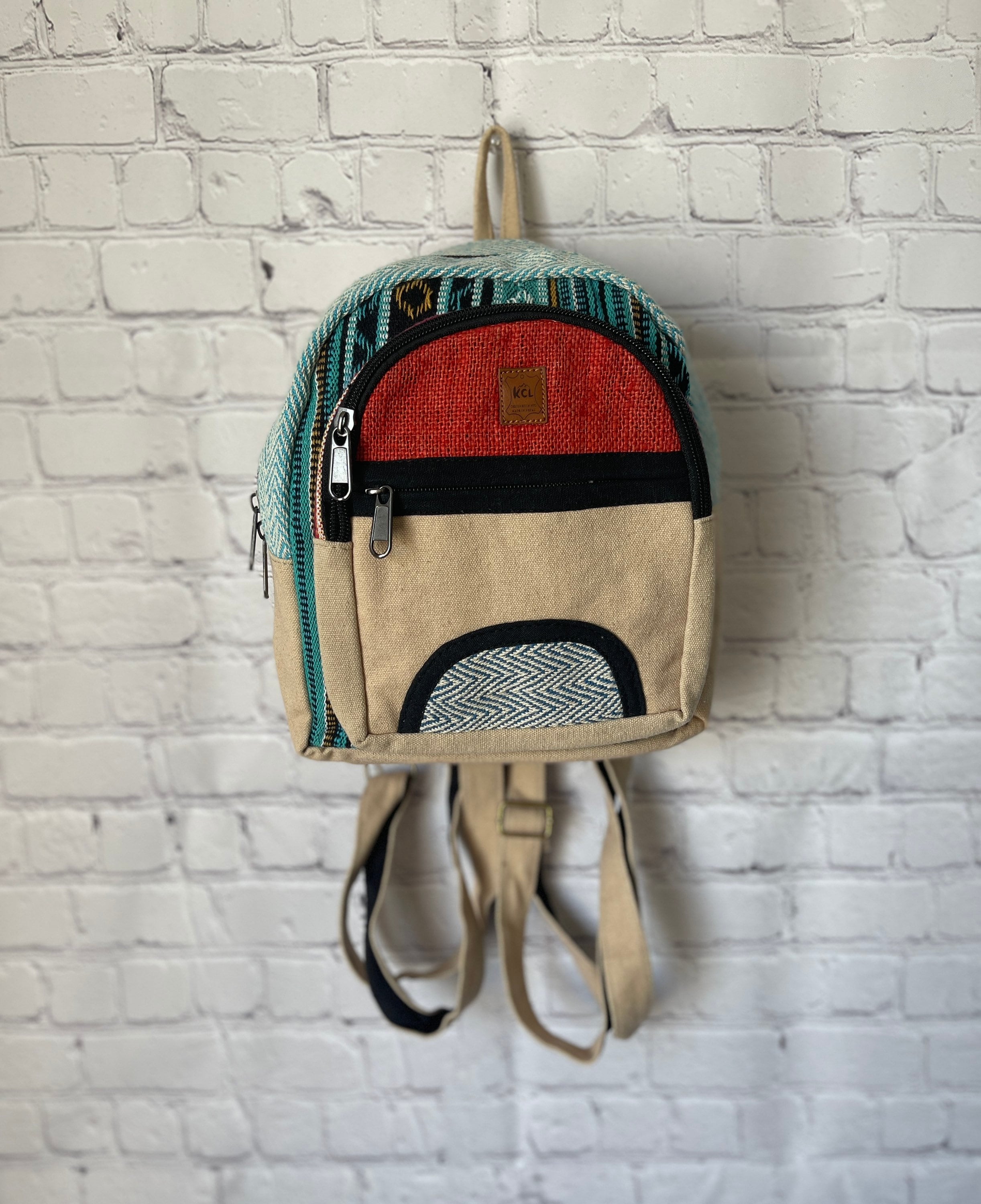 This unisex, high quality, Mini THC FREE Hemp Backpack features all different & unique multi color panels trimmed in Natural color Hemp Fabric. It is an ethical, sustainable, eco-friendly alternative to synthetic and leather backpacks, featuring 100% wild hemp exterior lined with heavy duty cotton ,all unique in its own way .