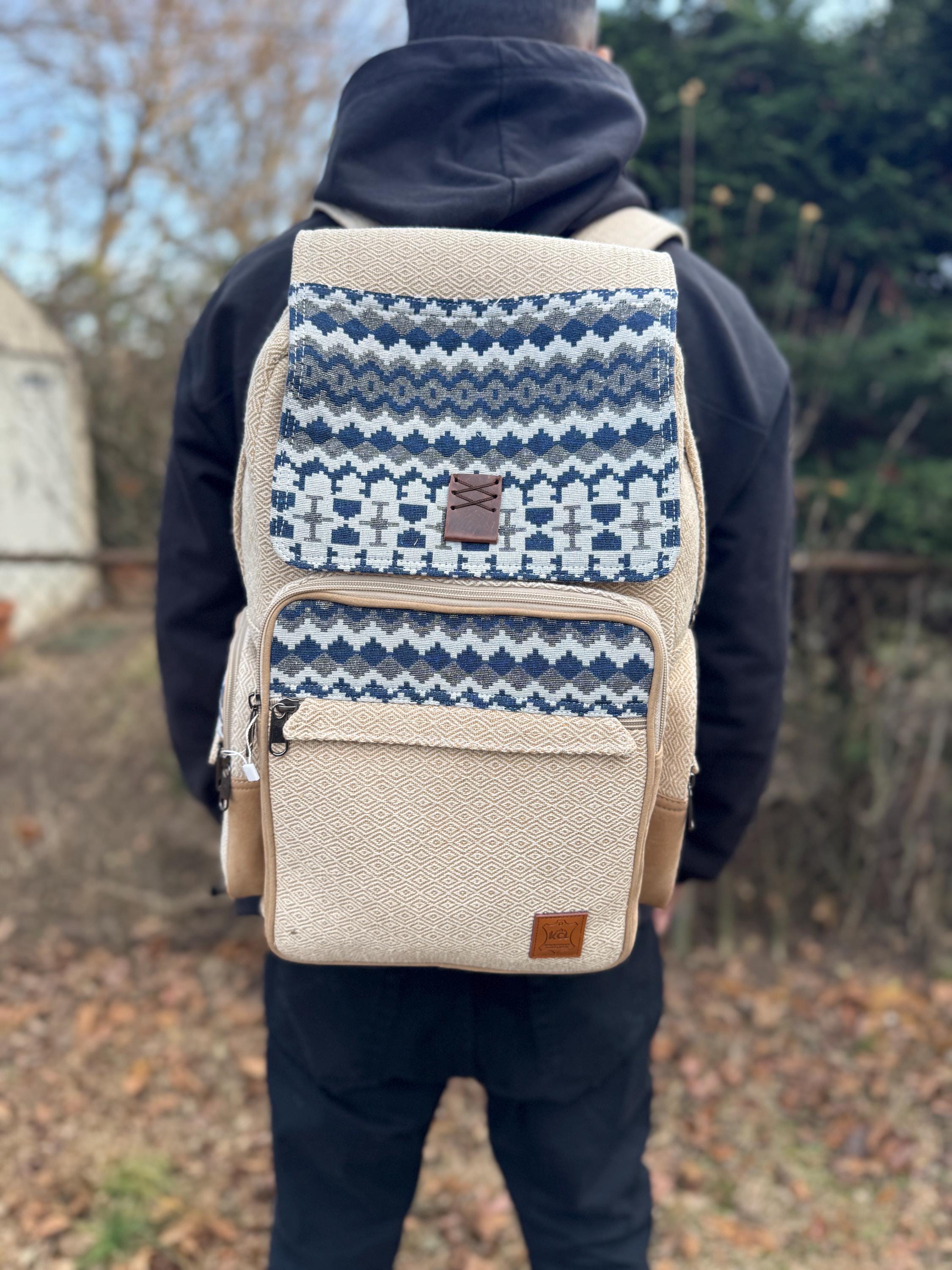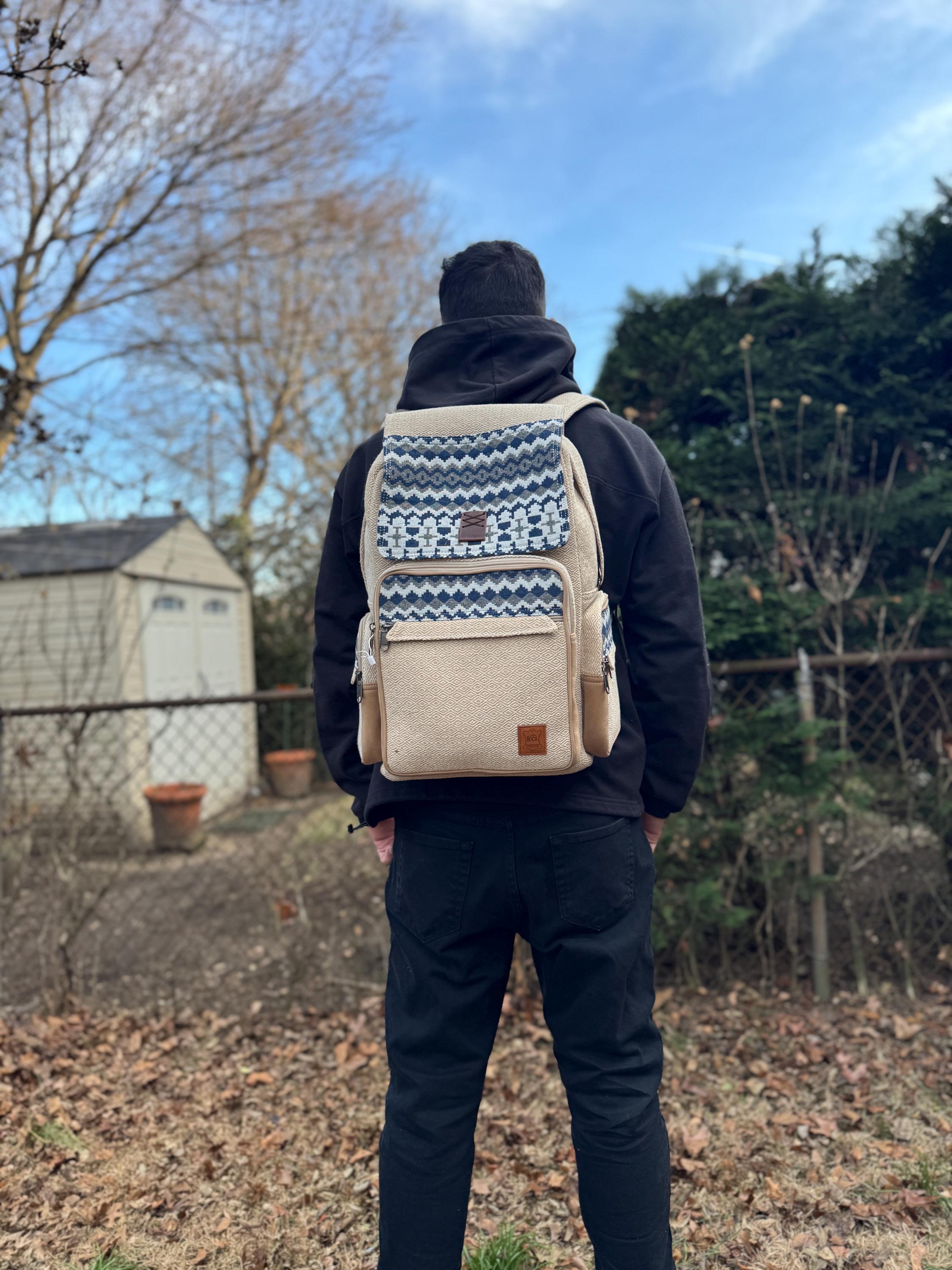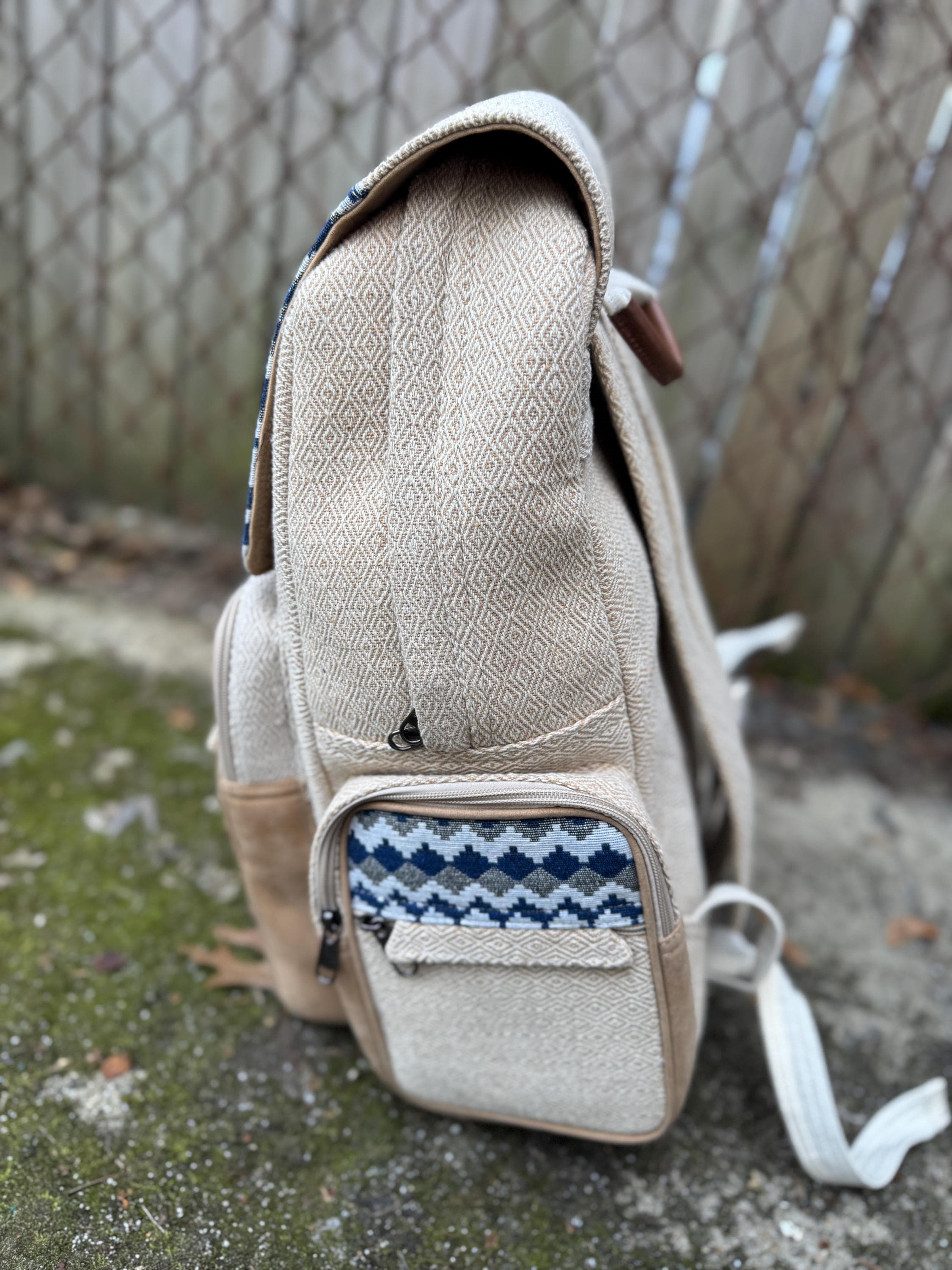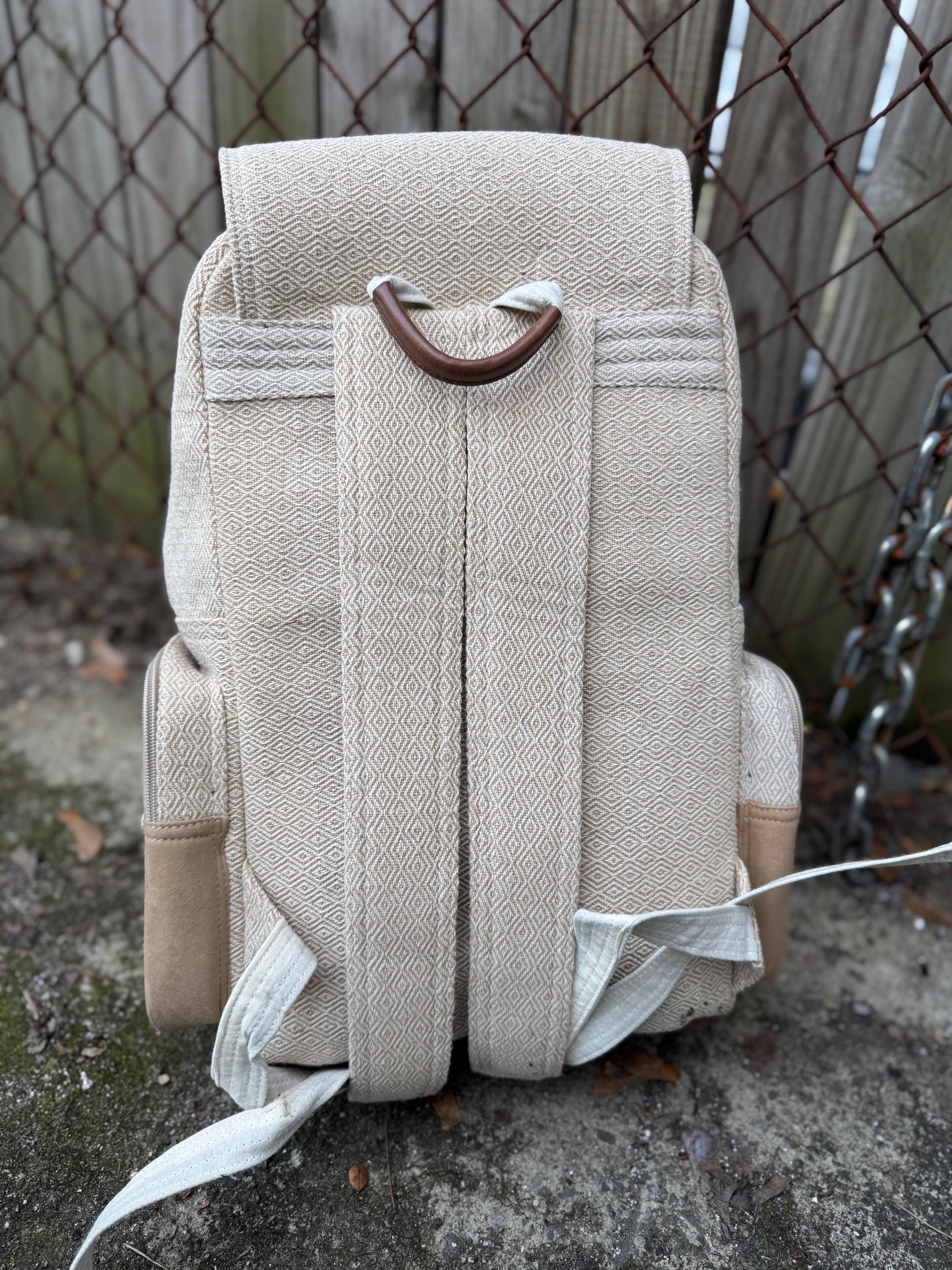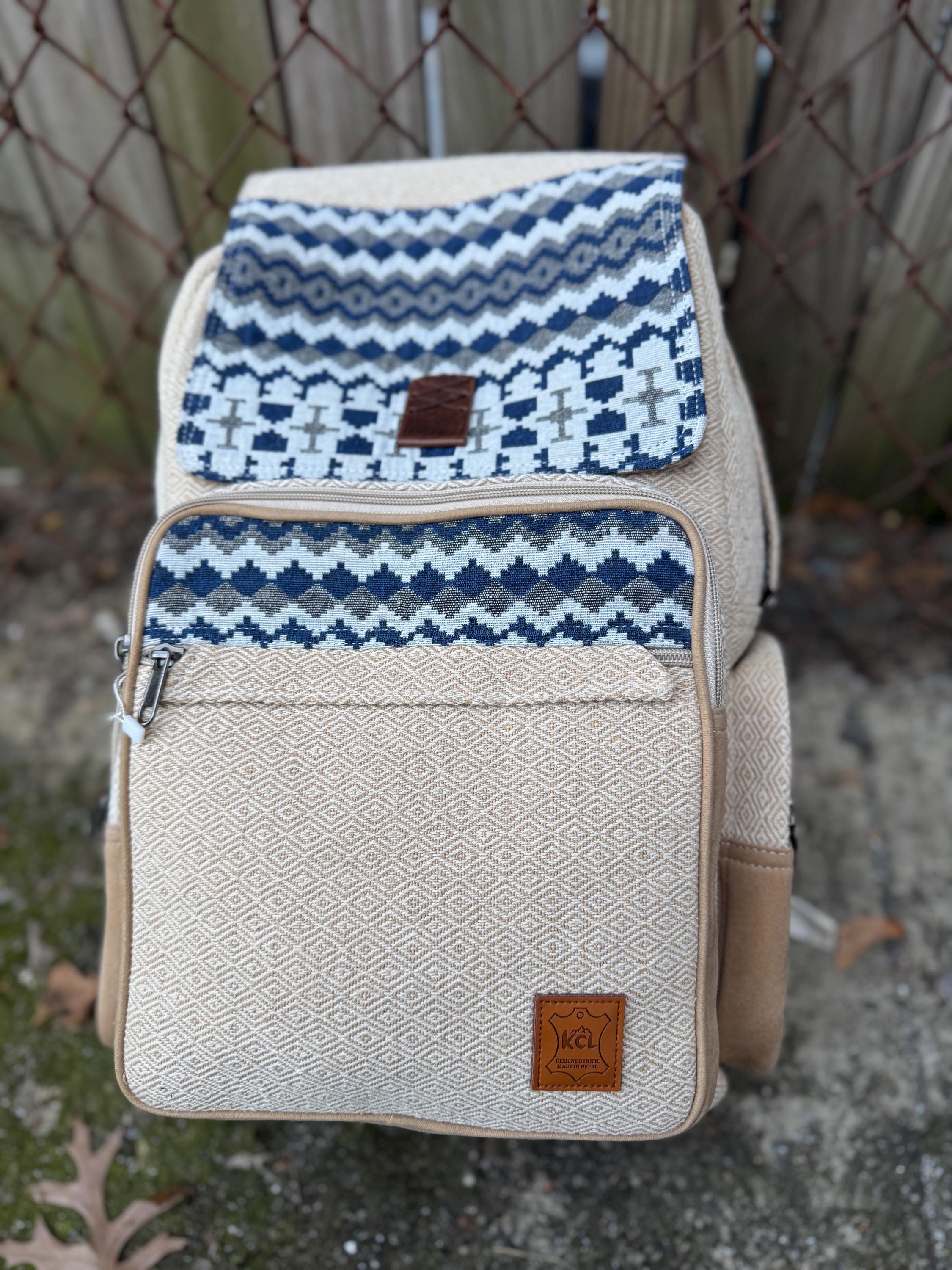 This one of a kind a hard padded Cotton backpack, Handmade in the mountains of Nepal is perfect for back to school, hiking, travel, or to use casually daily .