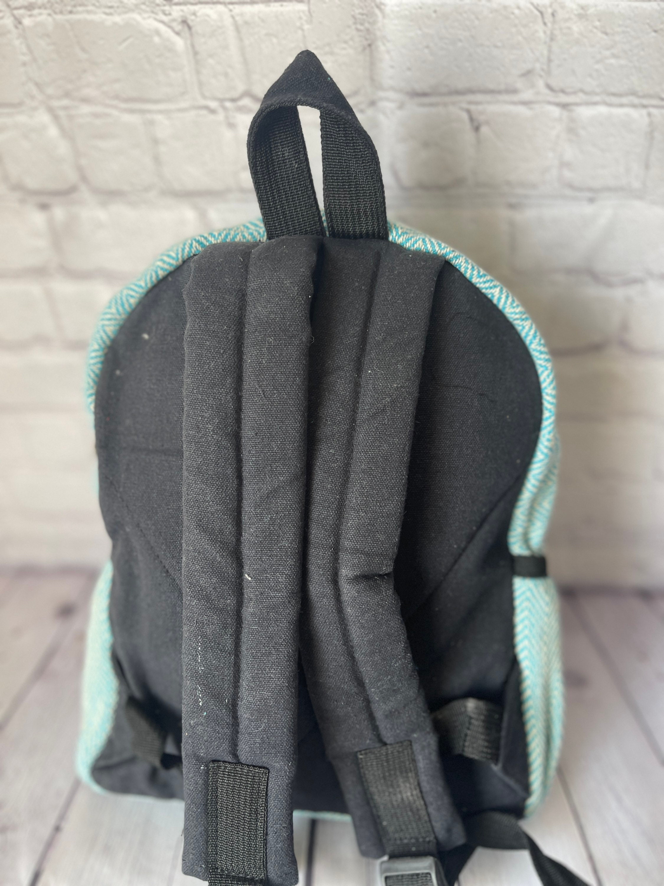 Unisex Handmade Blue Colored black pocket Cotton Mini Backpack with multiple pockets.