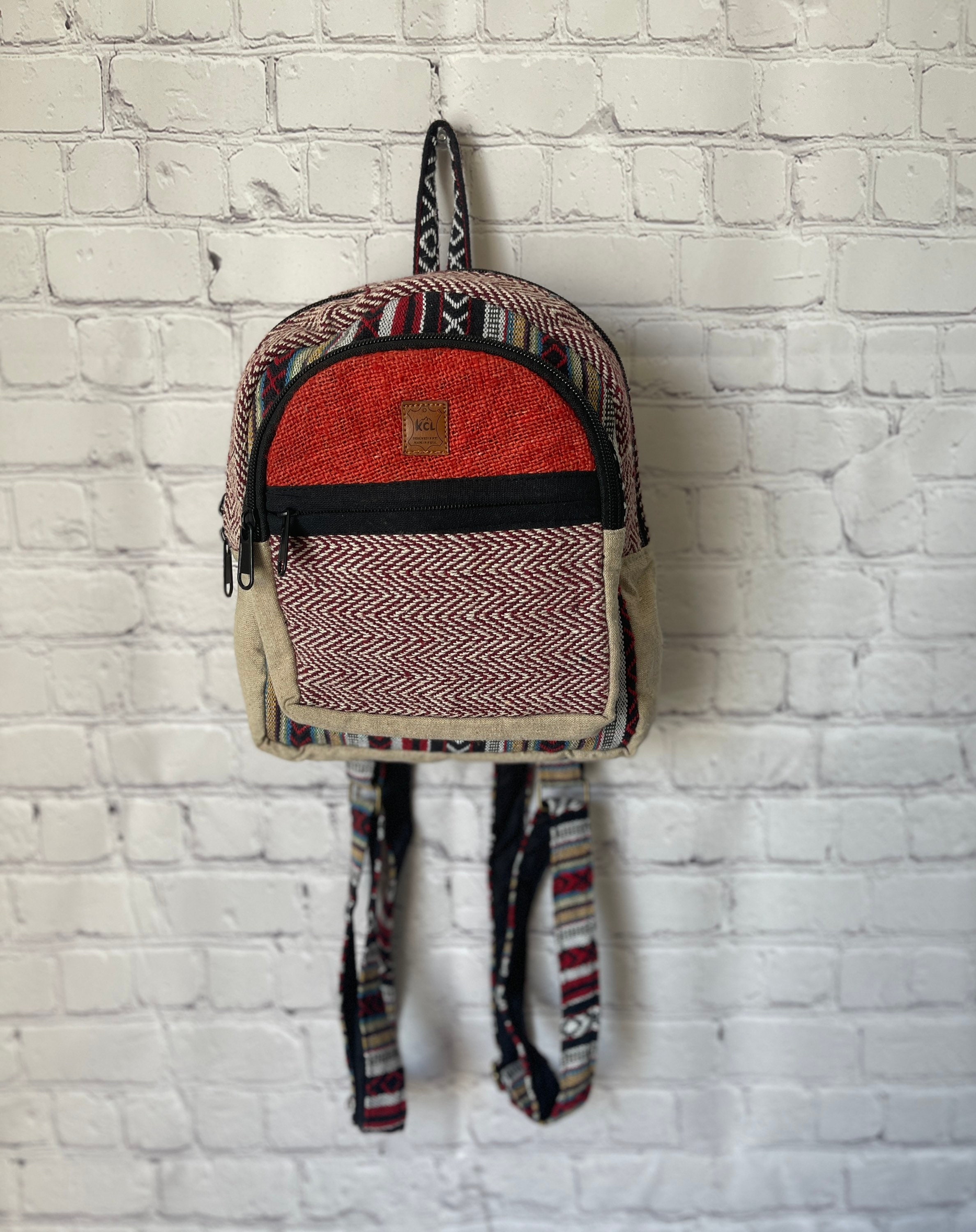 This unisex, high quality, Mini THC FREE Hemp Backpack features all different & unique multi color panels trimmed in Natural color Hemp Fabric. It is an ethical, sustainable, eco-friendly alternative to synthetic and leather backpacks, featuring 100% wild hemp exterior lined with heavy duty cotton ,all unique in its own way .