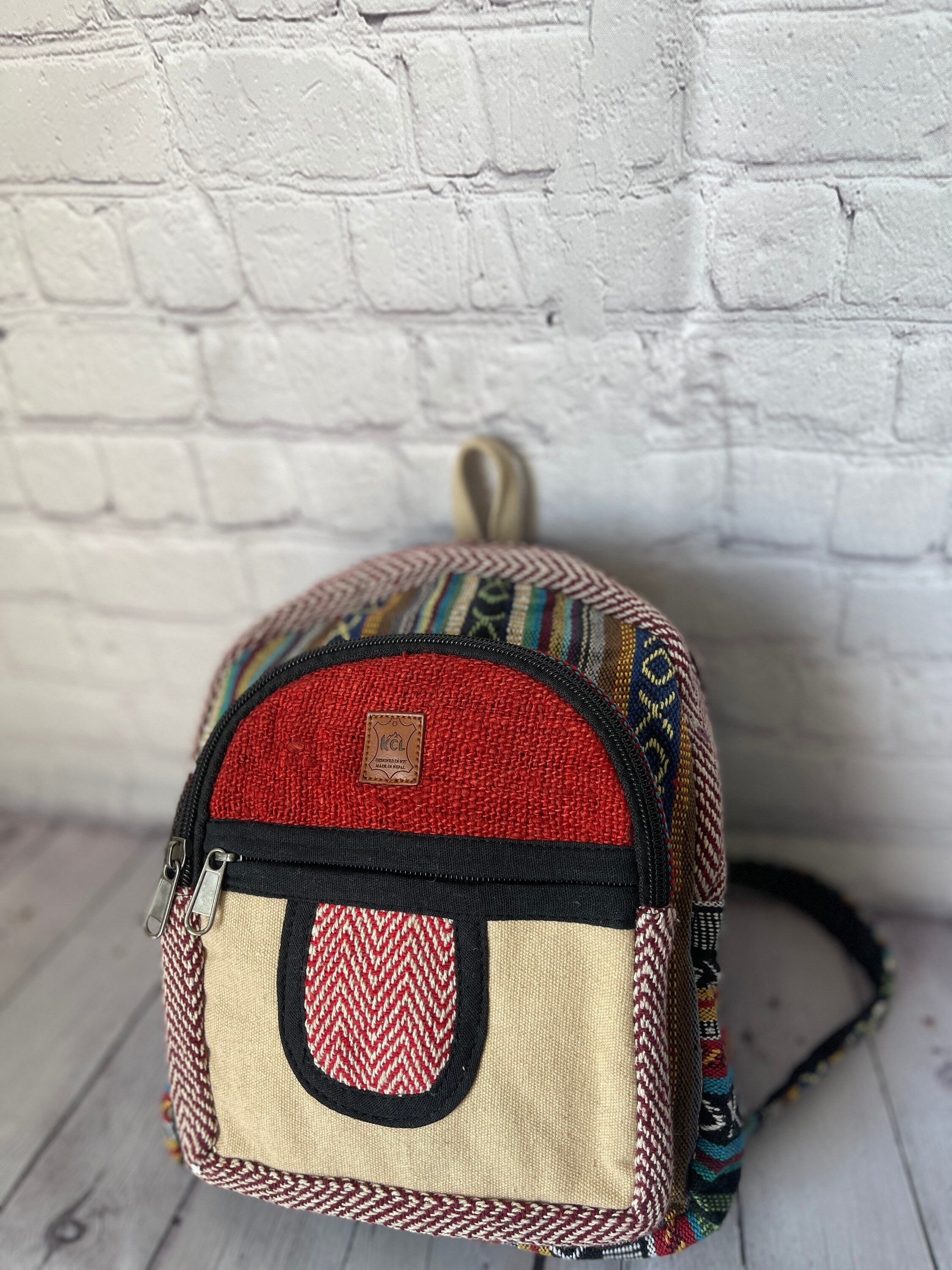 This one of a kind backpack, handmade in the mountains of Nepal, is perfect for back to school, hiking, or travel, casual daily .