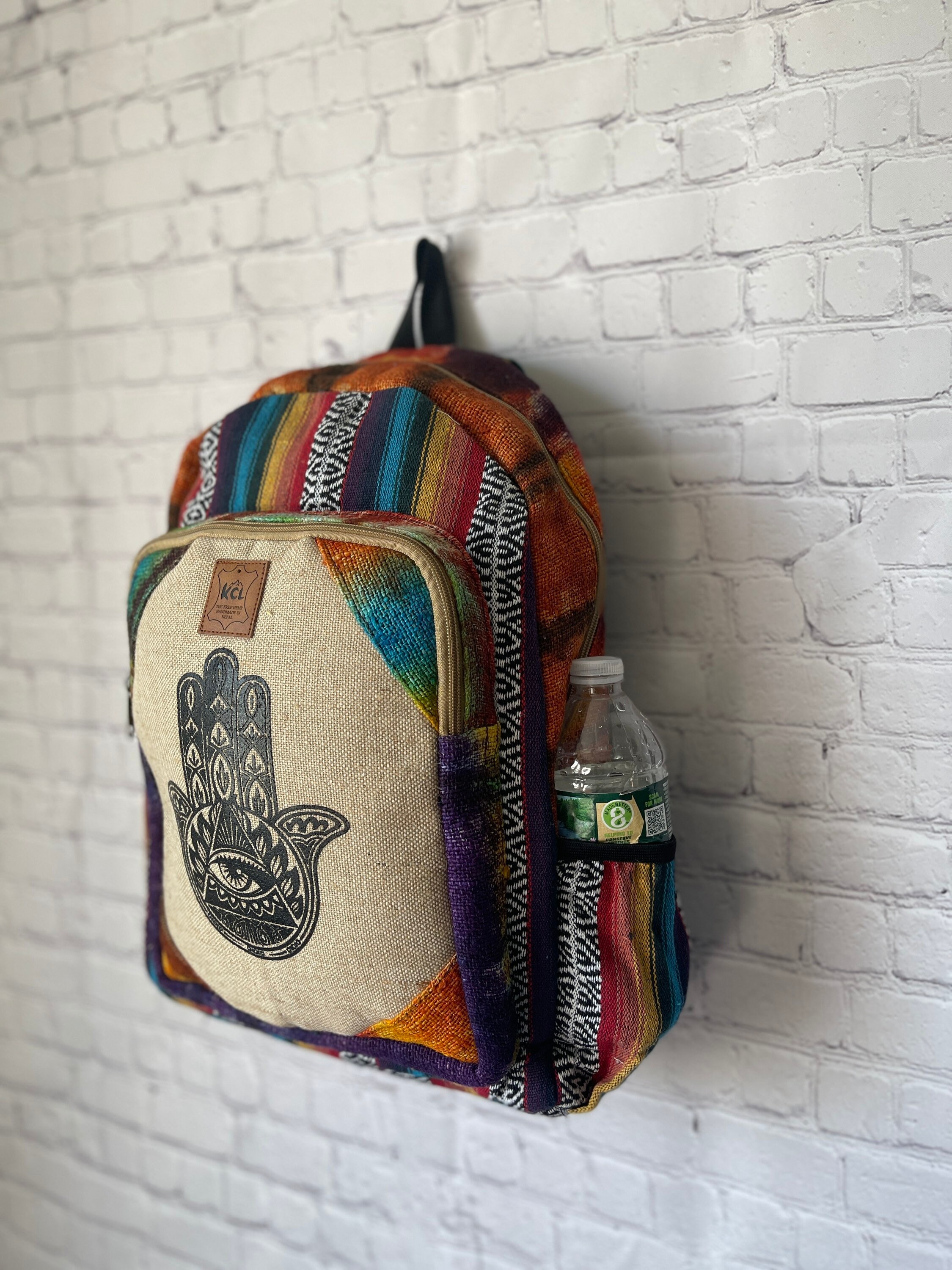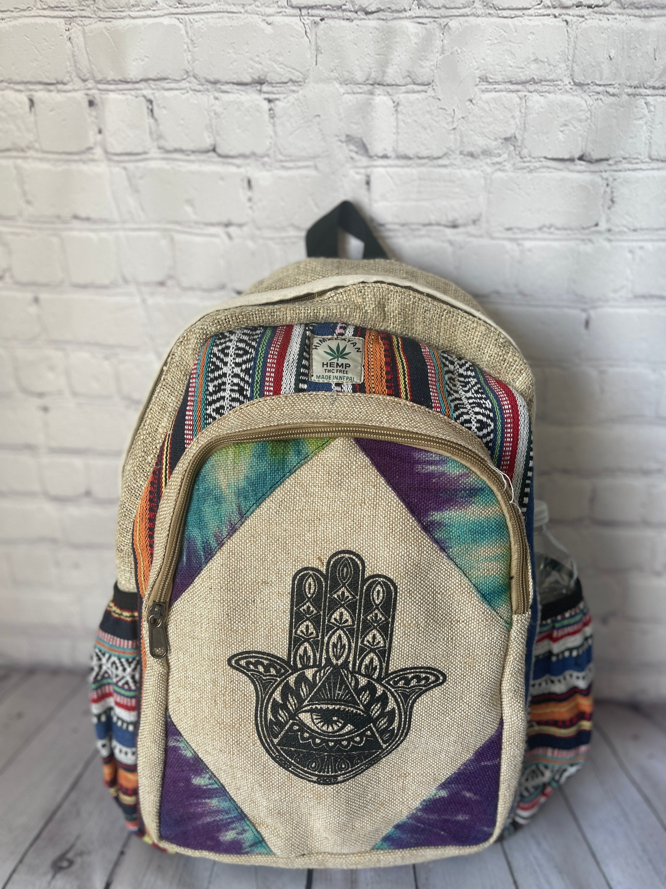 This one of a kind backpack, handmade in the mountains of Nepal, is perfect for back to school, hiking, or travel,casual daily .