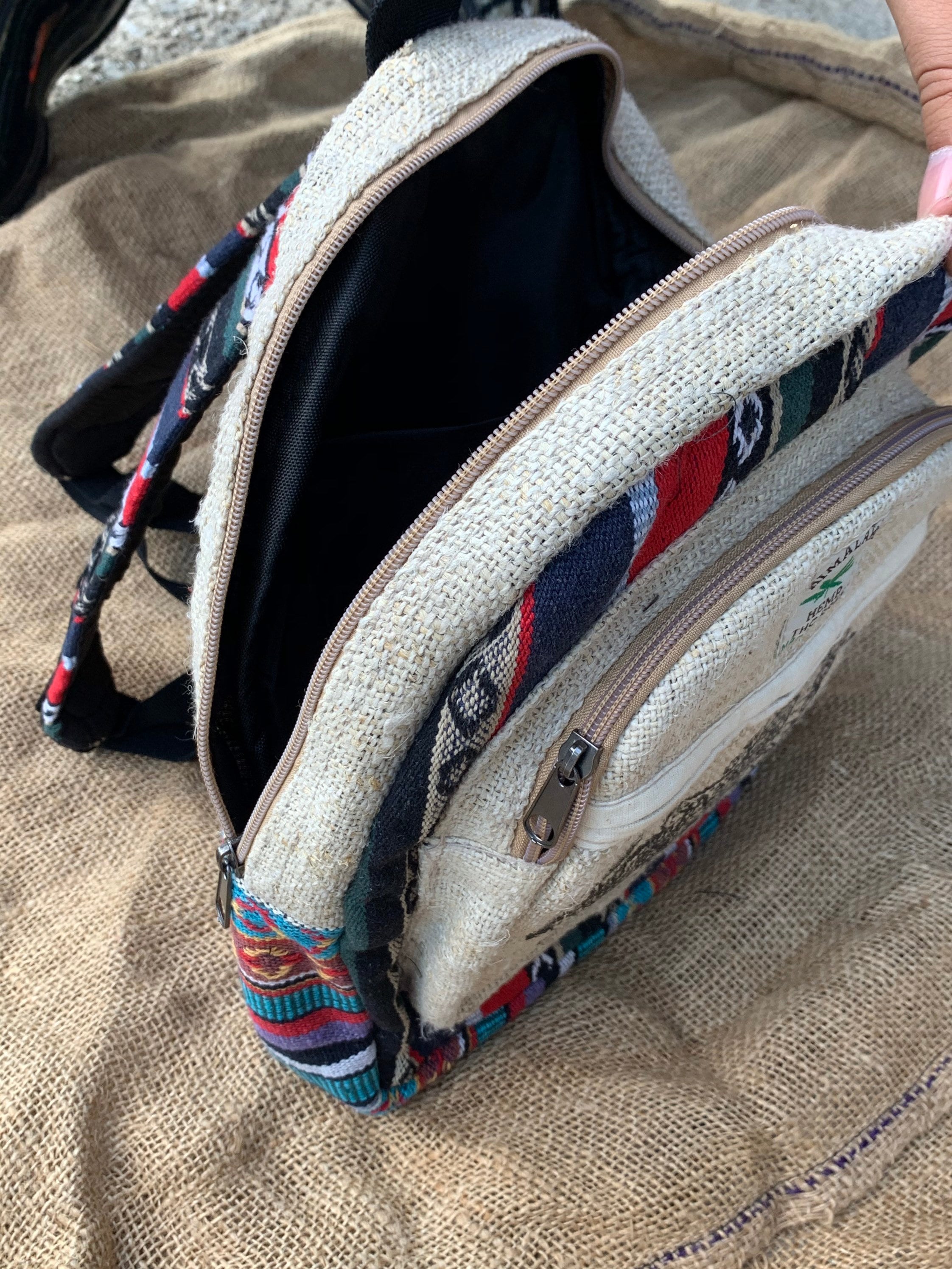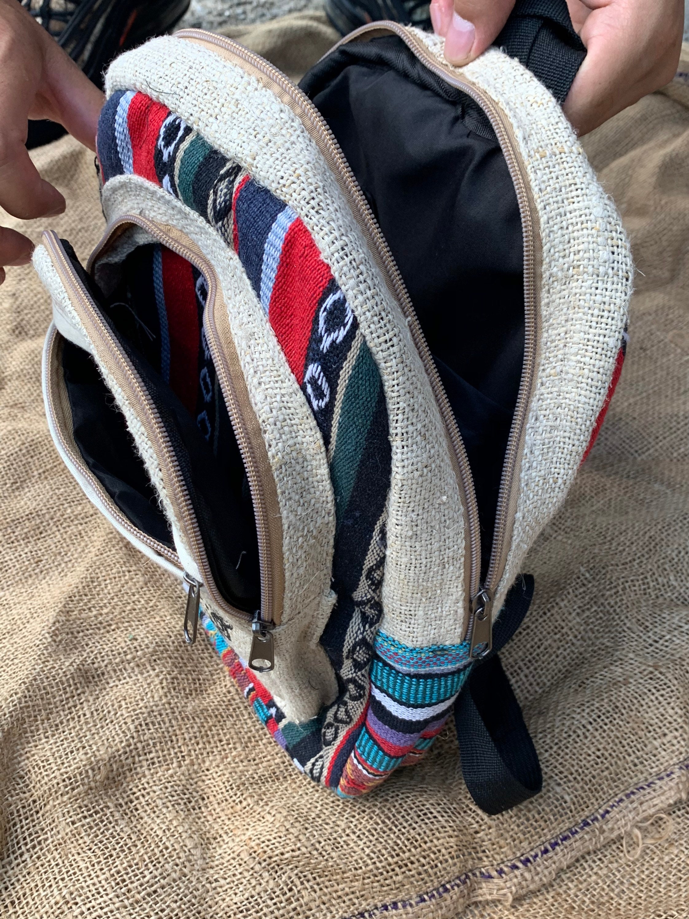 This one of a kind backpack, handmade in the mountains of Nepal, is perfect for back to school, hiking, or travel,casual daily .