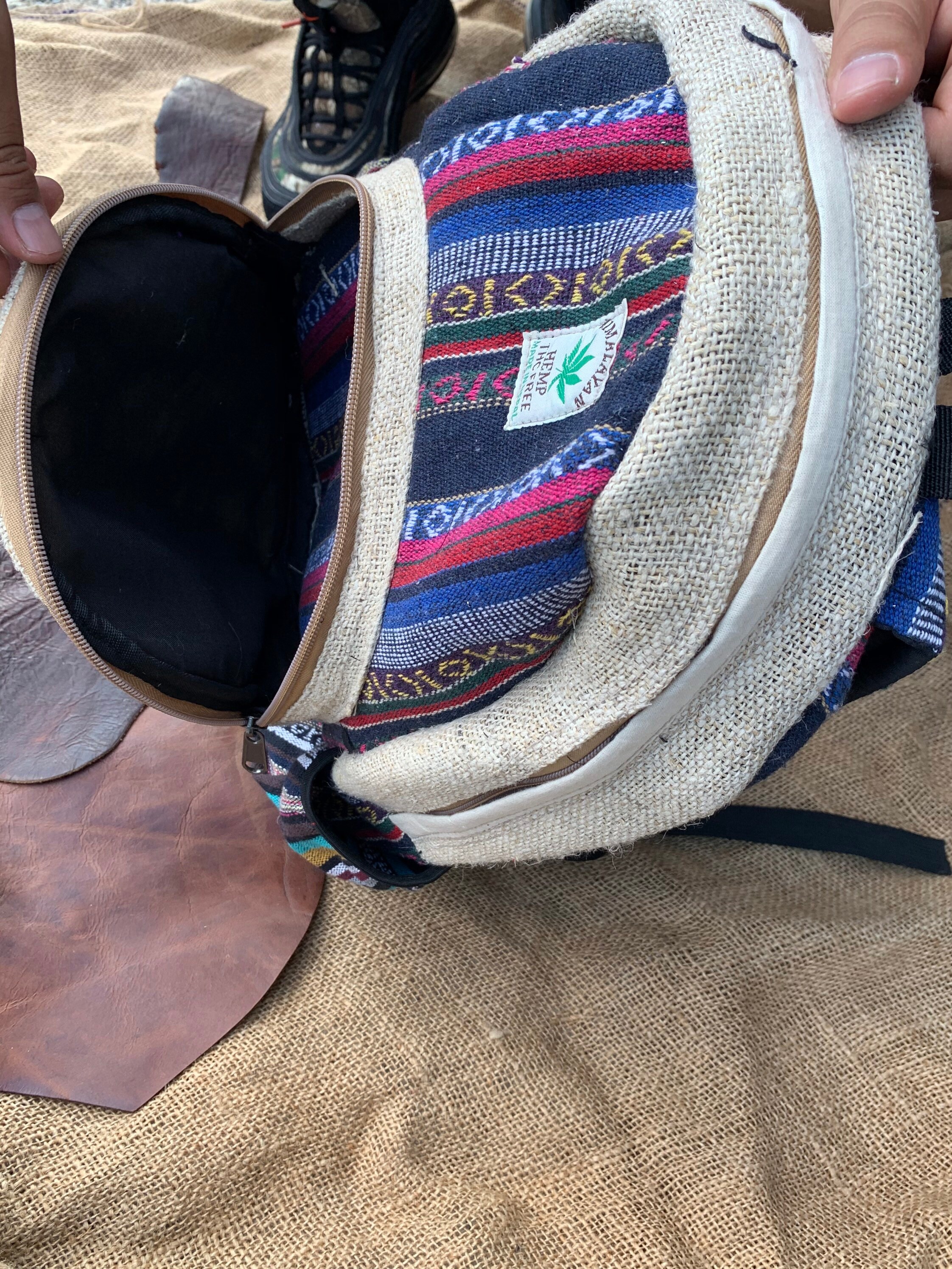This one of a kind backpack, handmade in the mountains of Nepal, is perfect for back to school, hiking, or travel,casual daily .